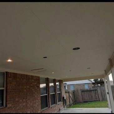 This is a extended patio covering with recess lighting and fans. Completed 2020